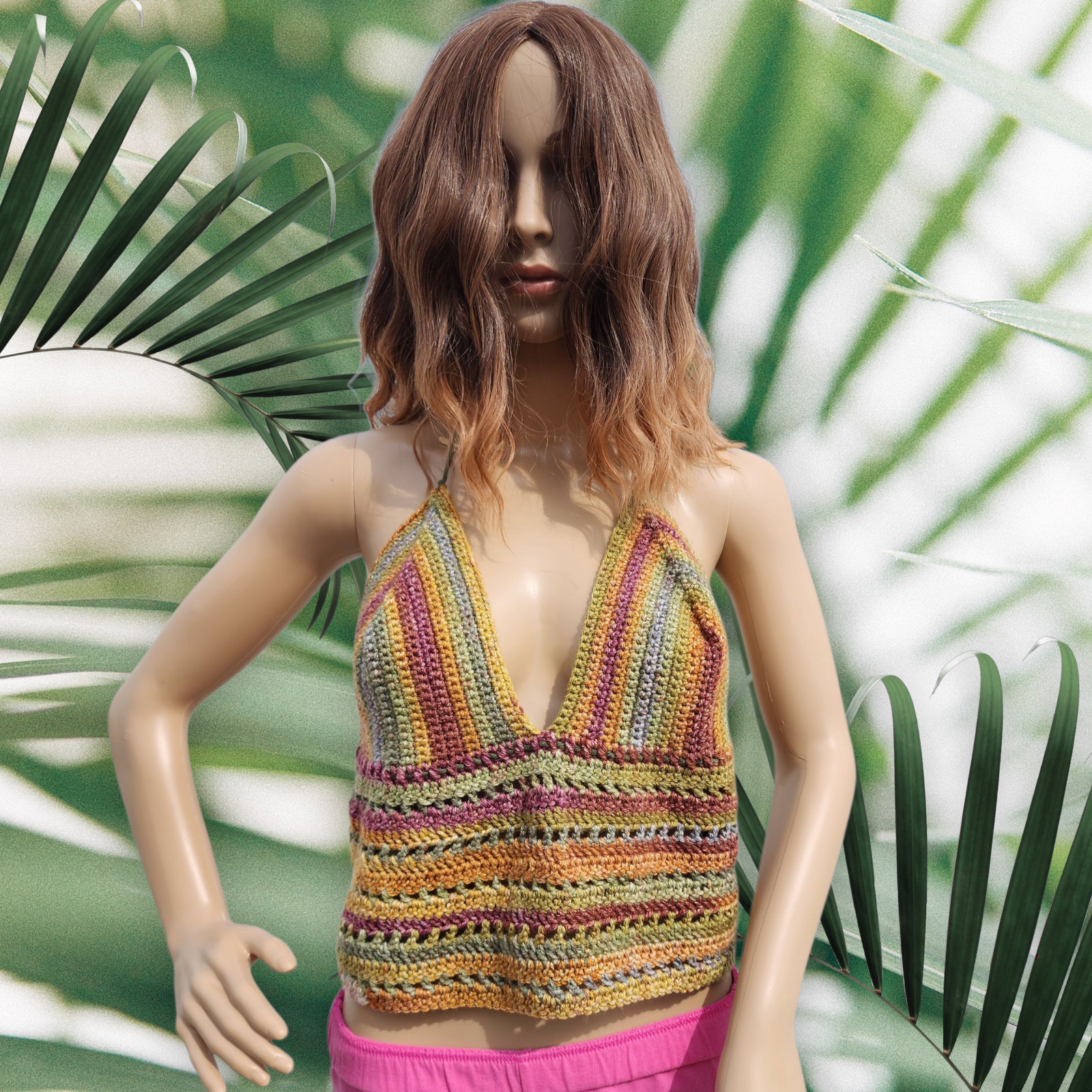 Handmade Crochet Tank Top *The Shelly* (Green/Orange/Burgundy)