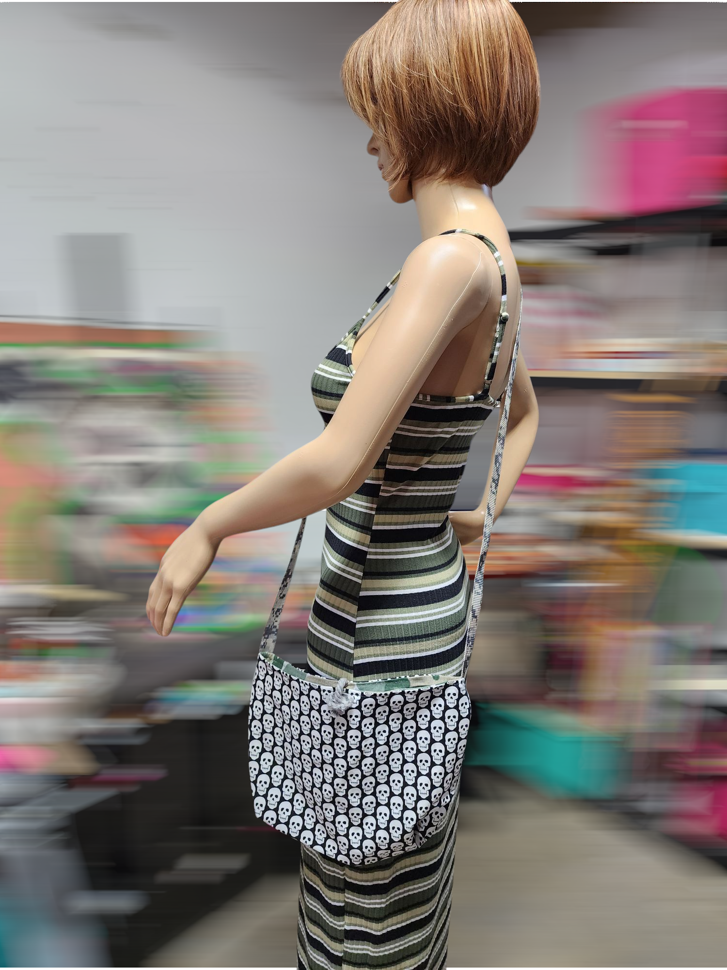Handmade Hippie Boho Reversible Crossbody Bag (Skull Print)